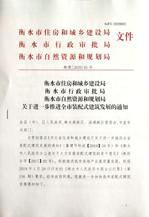 《衡水市人民政府辦公室關(guān)于大力發(fā)展裝配式建筑的若干意見》